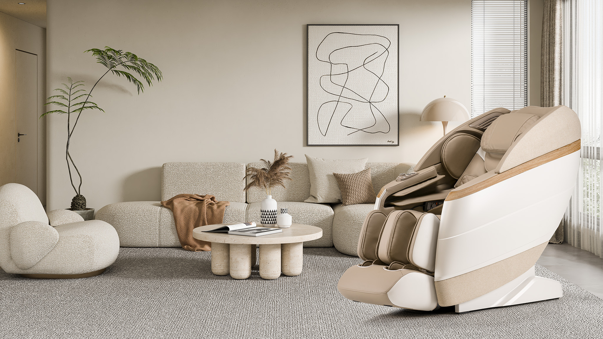 Queentri je masážne kreslo s mimoriadne decentným a jemným dizajnom , ktoré určite osloví milovníkov útulných interiérov . Mäkké, aerodynamické tvary kresla, tlmené farby a čalúnené prvky, ktoré sú veľmi príjemné na dotyk, mu dodávajú jedinečné čaro a pôvab . Zároveň lamely s dreveným motívom a LED bočné svetlá v spodnej časti kresla umocňujú jeho osobitosť . Masážne kreslo je dostupné v dvoch farebných variantoch , béžovej a čierno-béžovej, a poskytuje nielen neuveriteľnú relaxáciu, ale je aj vkusnou dekoráciou interiéru.