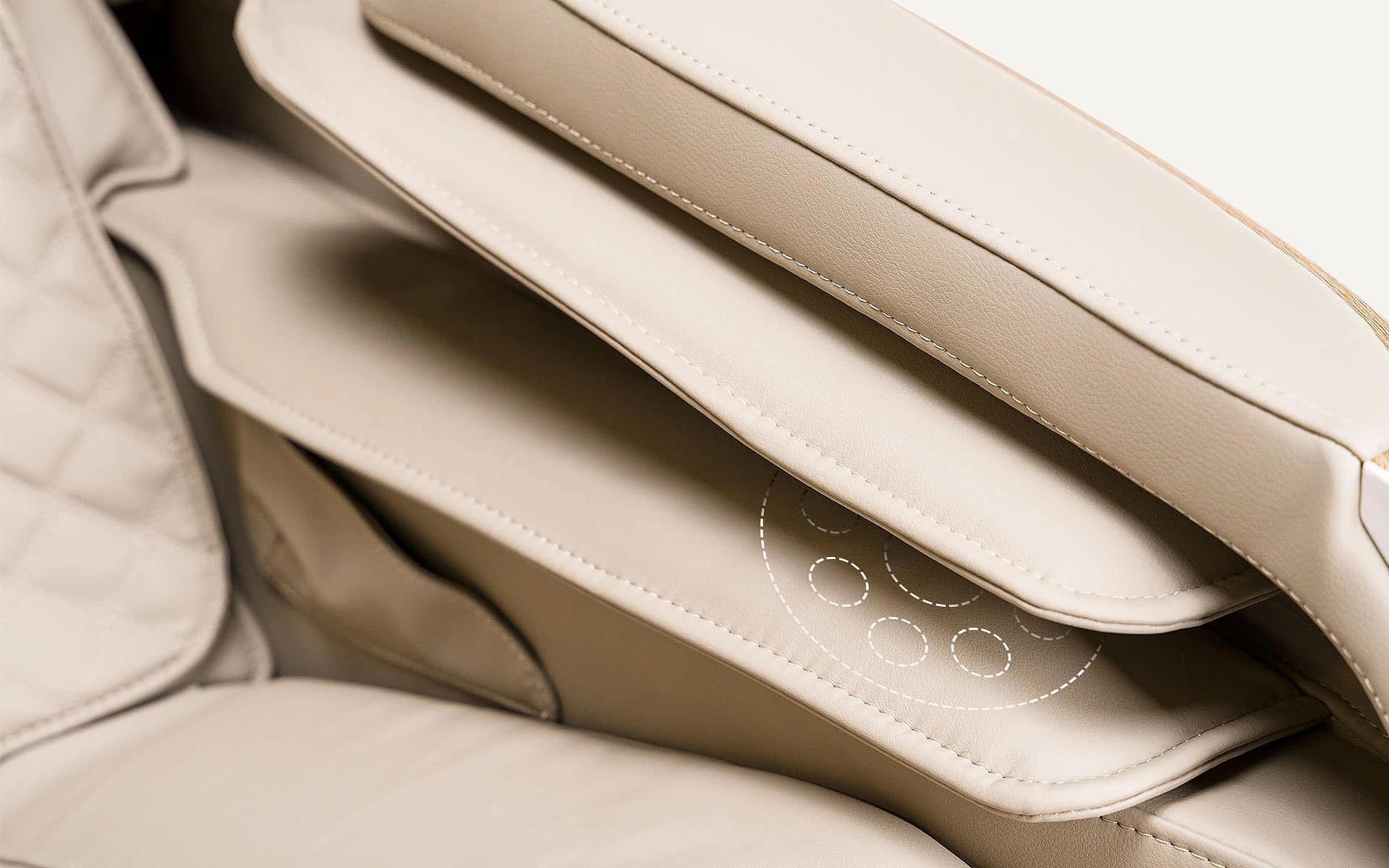 3D masážny systém so sadou tlmených masážnych ramien poskytuje mimoriadne príjemnú a dôkladnú masáž. Masážny prístroj sa pohybuje nielen pozdĺž chrbtice a do strán, ale vysúva sa až do vzdialenosti 10 cm , čím dokonale masíruje aj tie najnapätejšie svaly.