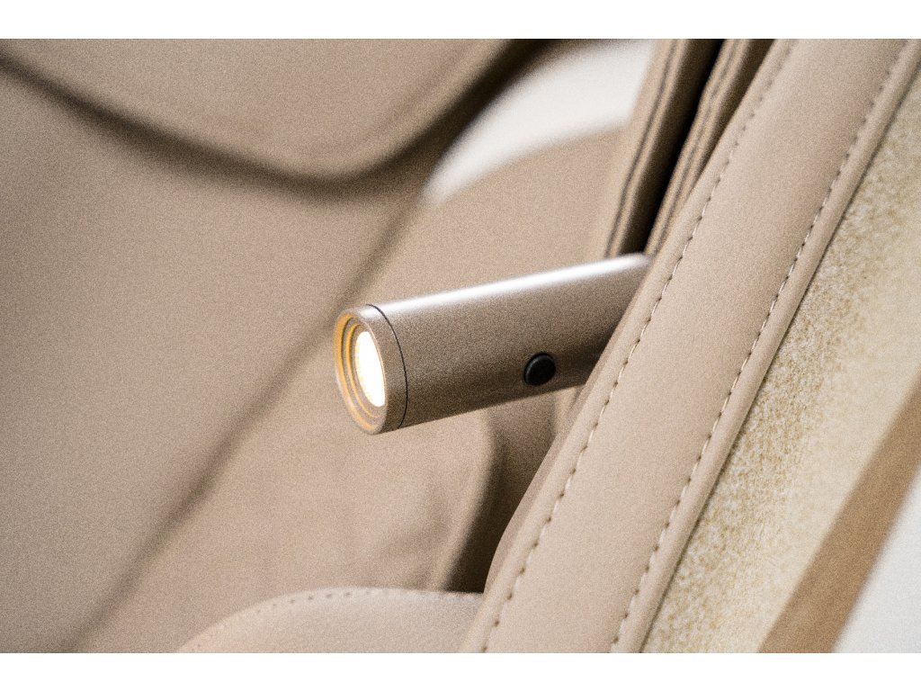 Dômyselne ukrytá v kryte masážneho kresla vám výsuvná LED lampa umožňuje relaxovať v masážnom kresle s knihou v ruke. Vďaka 3 úrovniam jasu sa nemusíte starať o ďalší zdroj svetla, a to ani keď sa okolo vás zotmie. Jednoducho si sadnite a relaxujte s obľúbenou knihou. Navyše sa od nej nemusíte odtrhnúť po skončení masáže, pretože lampa funguje bez ohľadu na to, či je kreslo zapnuté alebo nie .