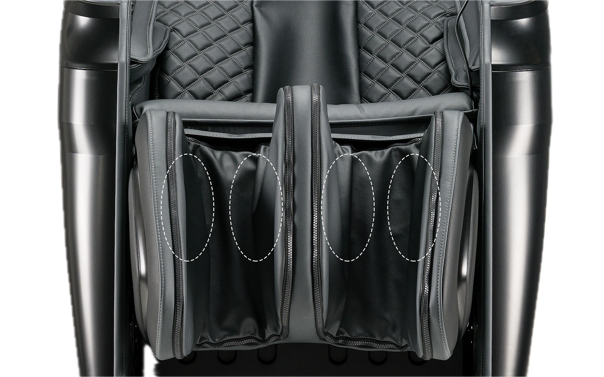 Airbagy obopínajú lýtka a prinášajú upokojujúcu úľavu nohám unaveným po náročnom dni alebo tréningu. Napätie sa uvoľňuje a svaly znovu získavajú svoju pôvodnú silu. Absencia masážneho prístroja na nohy znamená, že masážne kreslo je možné používať bez vyzutia topánok.