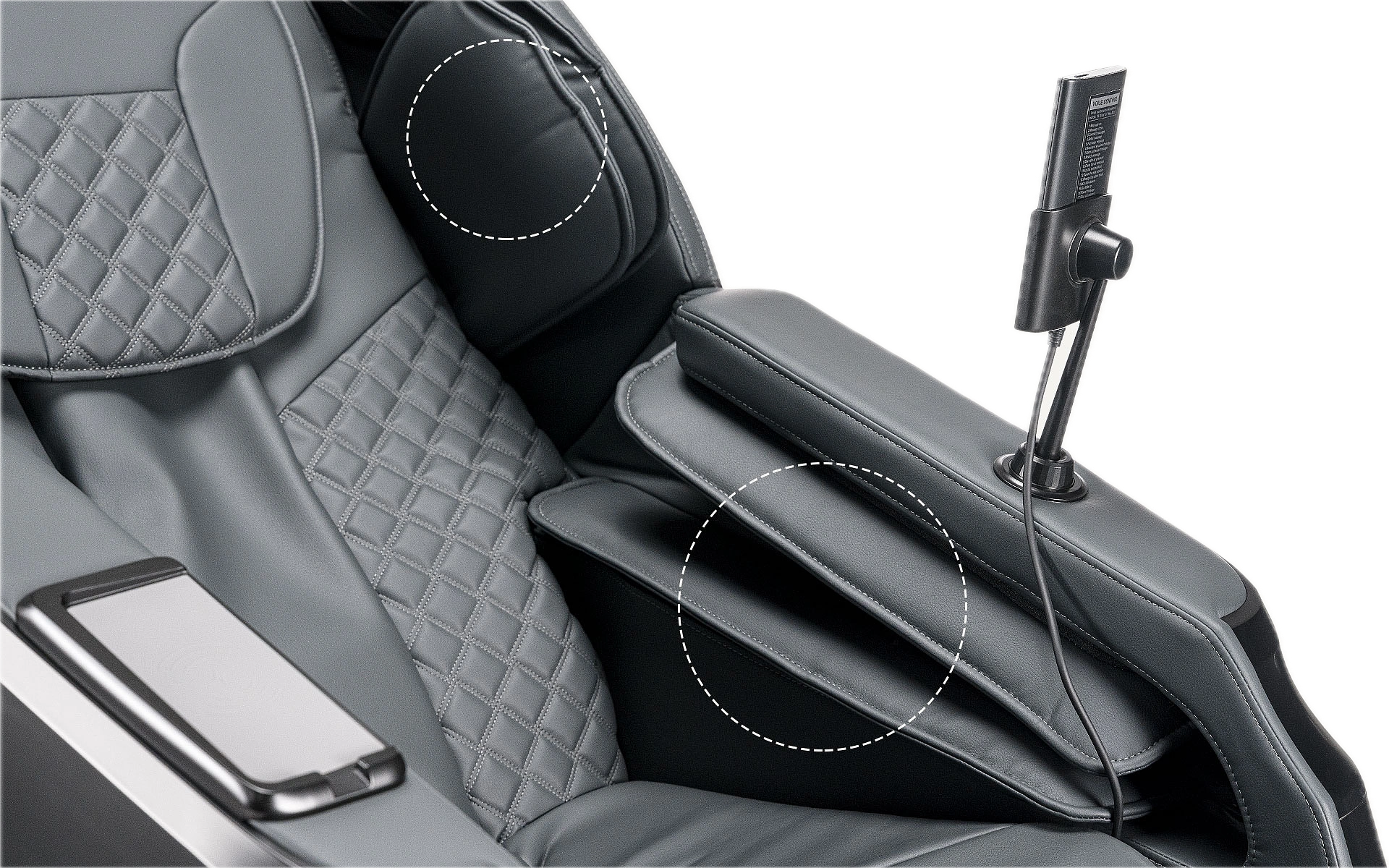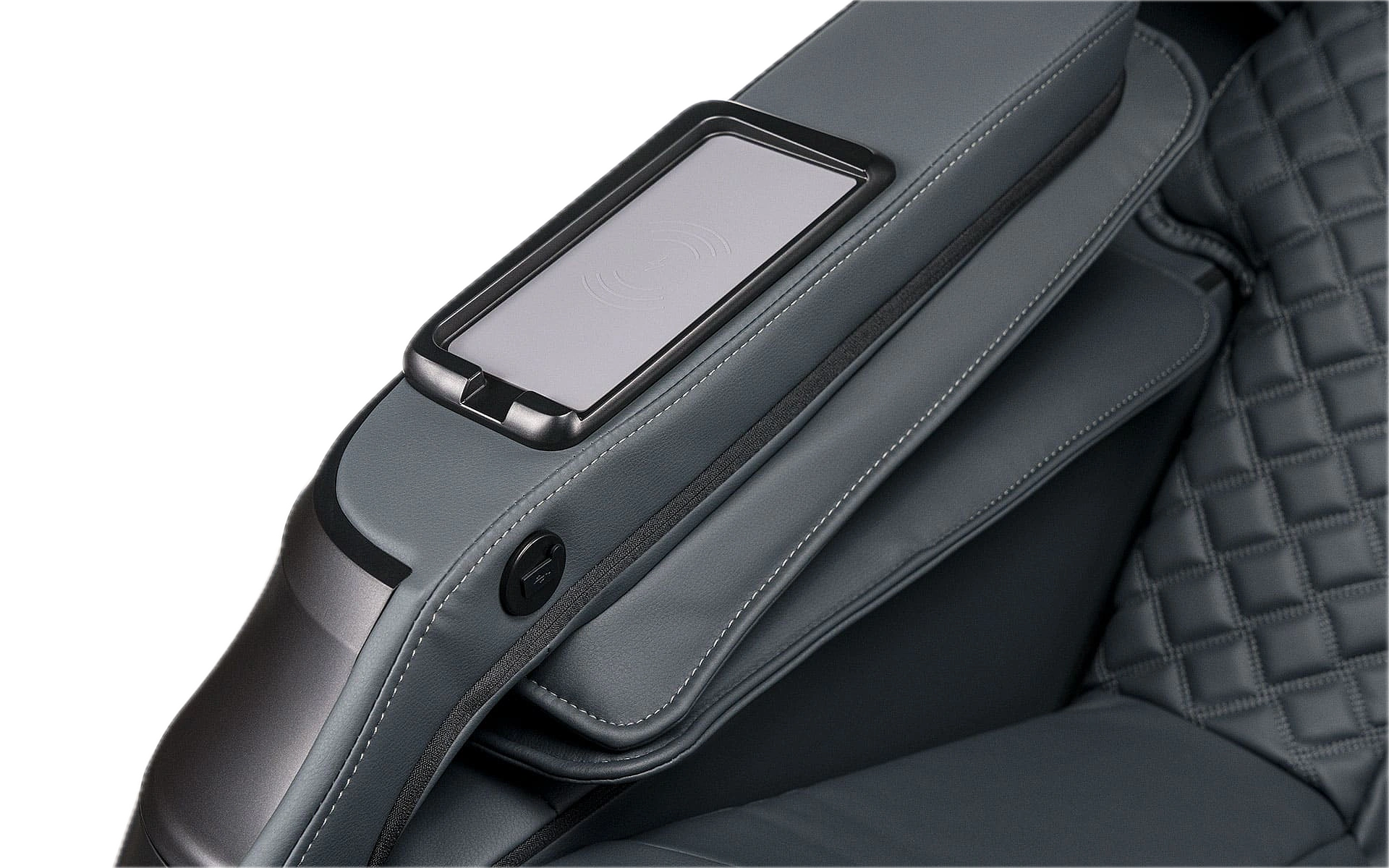 Aby ste si počas celého sedenia udržali príjemné relaxačné zvuky, pravá lakťová opierka obsahuje bezdrôtové nabíjanie a USB port .